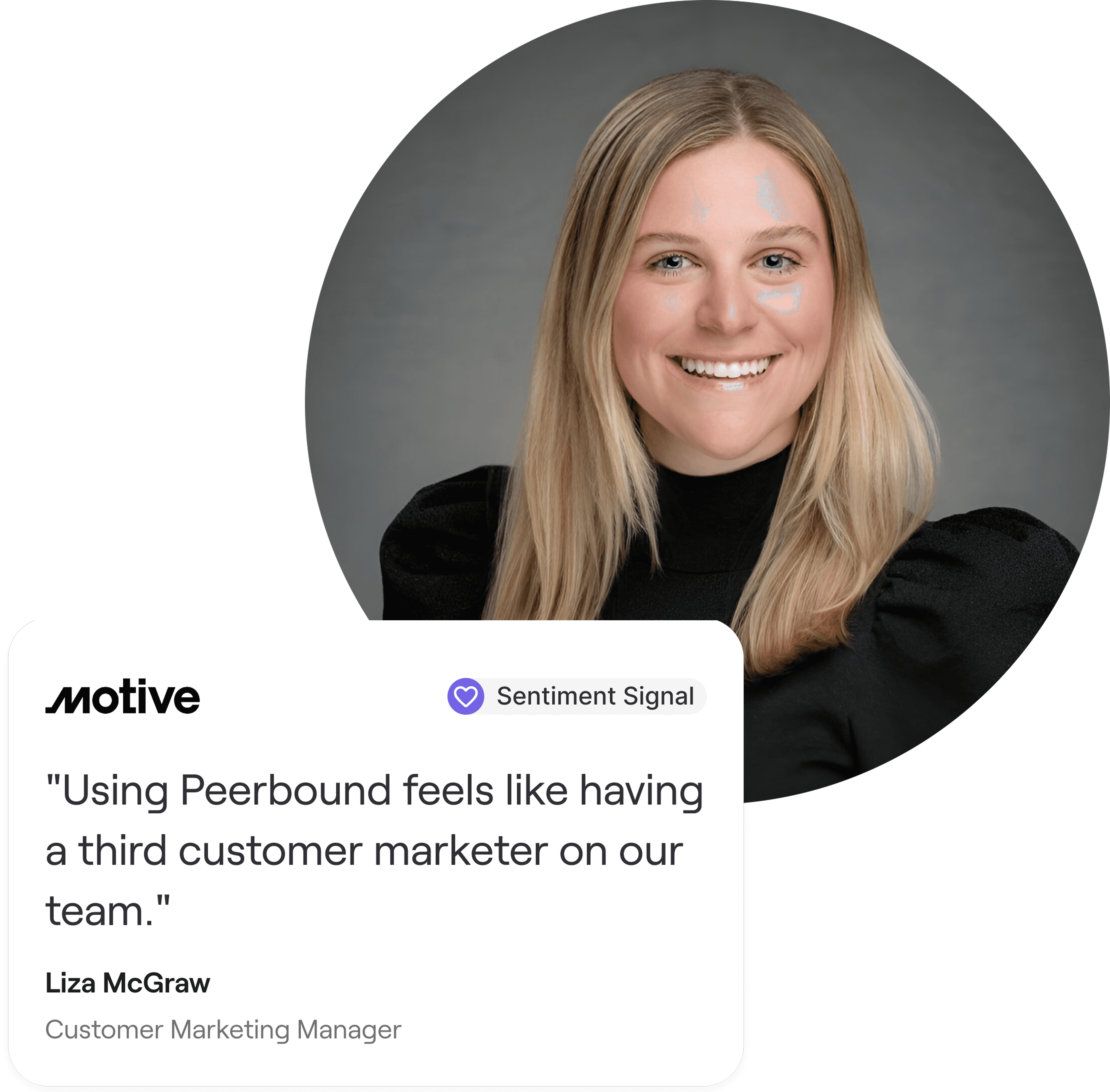 Say goodbye to asking Customer Success for advocates, and say hello to always-on advocacy. Peerbound’s AI listens 24/7 to your customer calls, reviews, and more – every channel where customer voice lives. Start each day with a fresh batch of proof, brought to you automatically.